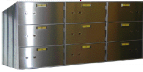 The USA Series safe deposit boxes by Vault Structures, Inc offer many of the same modular options as the American Series in a different style and finish. The safe deposit doors have a stainless steel clad finish on a solid composite door and feature changeable number plates. The doors have brass anodized hinges and lock noses.